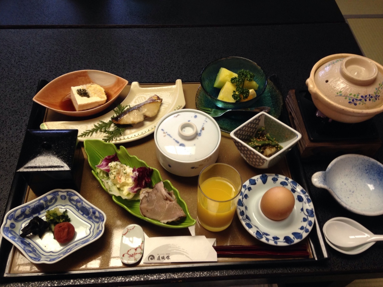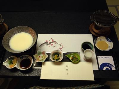 食事は朝晩ともに部屋食で老齢の両親の為に椅子とテーブルで食事できるように手配して頂けました。美味しかったですが松山の名物と思われるような特徴のある食事ではないような気がしました。夕食時にスタッフの方にお茶会はどうかと誘っていただき、20時半から茶室でお抹茶を頂きました。初めて入るお茶室は雰囲気があり、お茶をたててくださる先生のお話も楽しくて良い経験になりました。