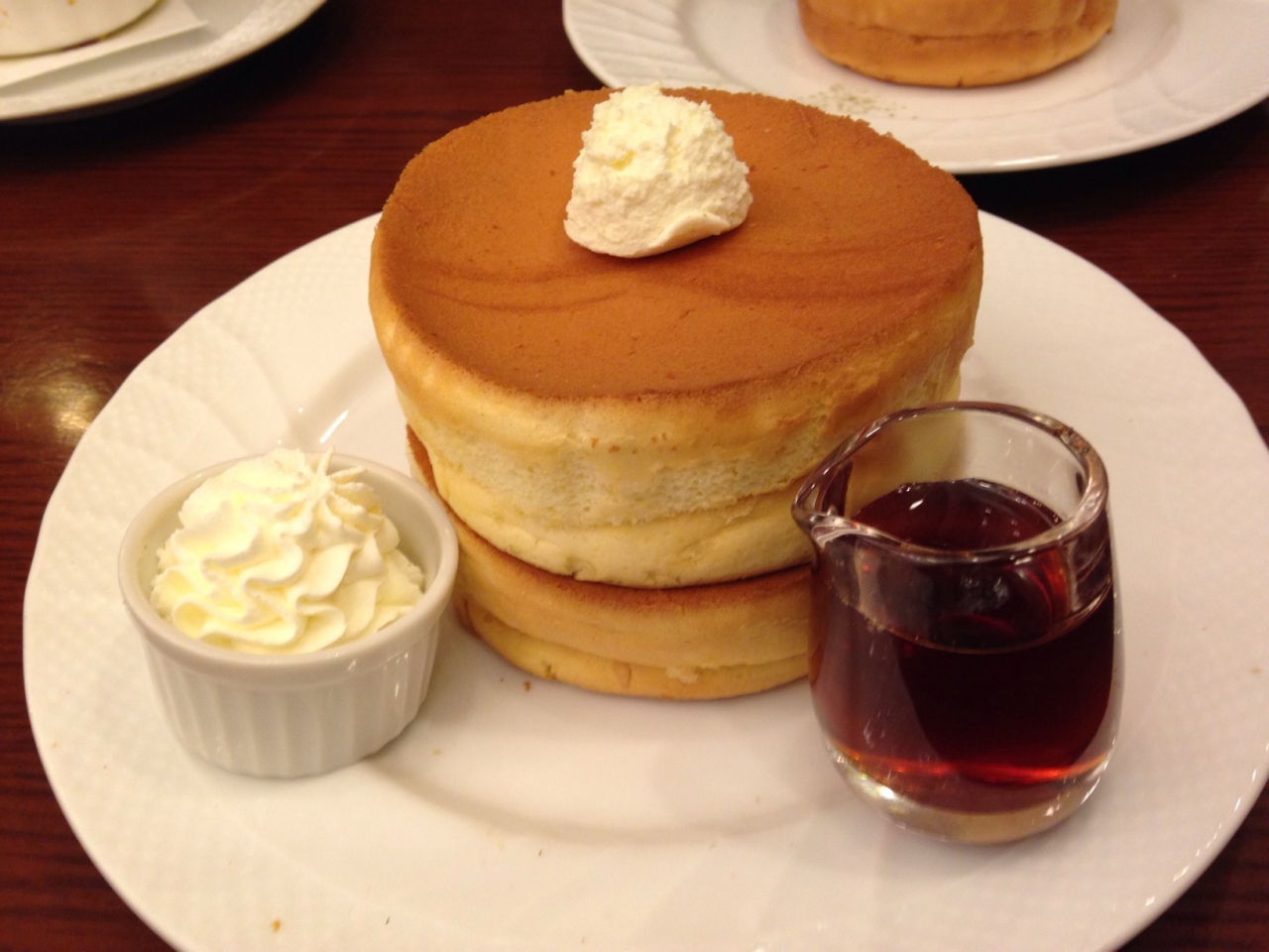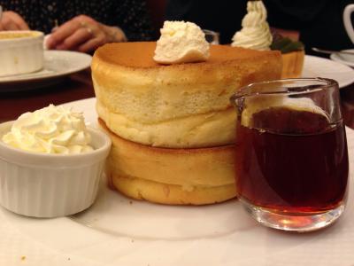 店内はゆったりした席の広さになっていてレトロな喫茶店の雰囲気があります。有名なスフレとパンケーキ、珈琲などを注文。珈琲は美味しかったけどカップが小さくて物足りない感じ。スフレとパンケーキの見た目は本当にインパクトがあったけど食べてみると普通でした。- 旅行時期
