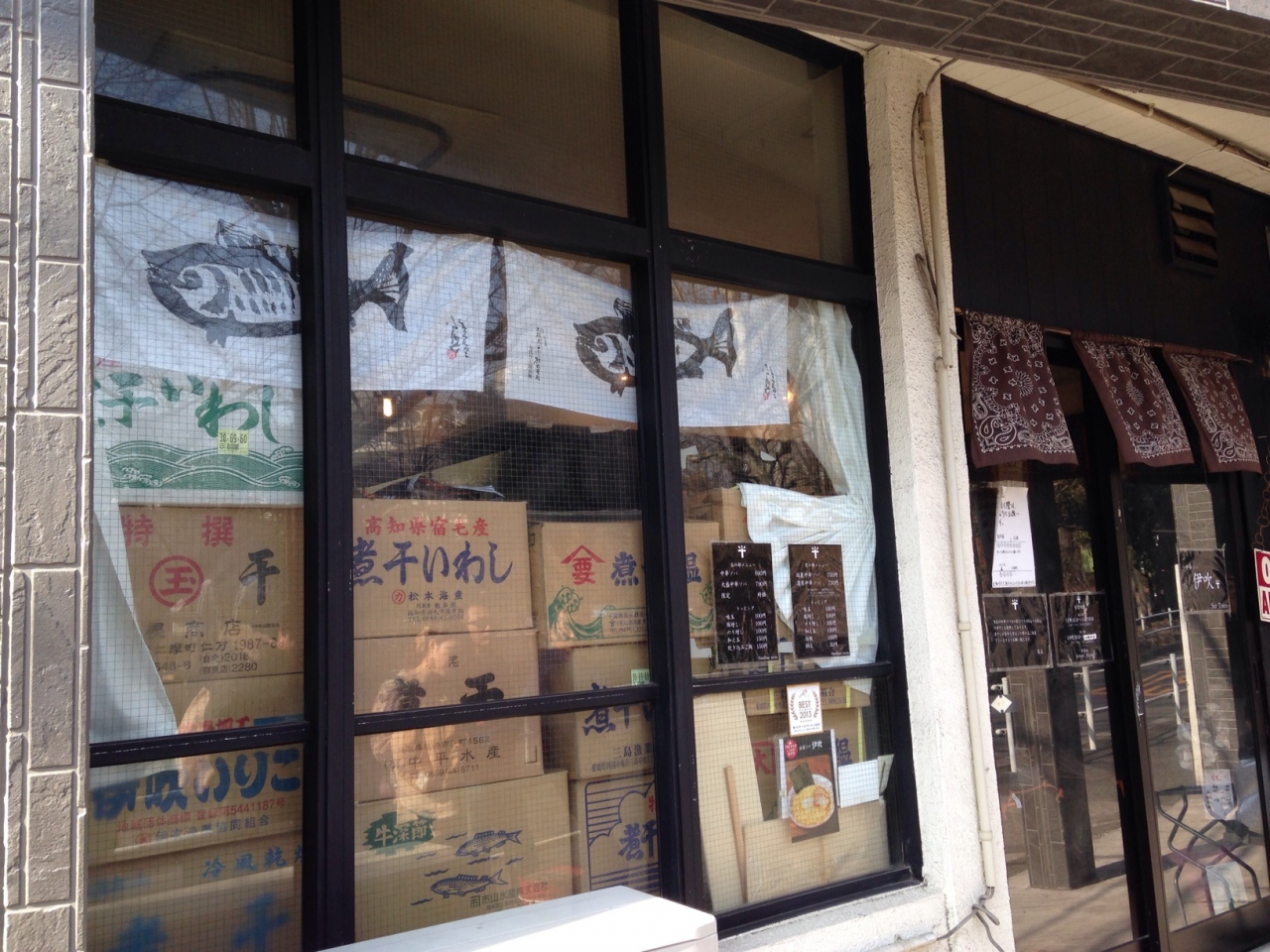 外から見ていても煮干し使ってるんだなと分かるような店内に煮干しの段ボールが山積みになっています。店内から時々お母さんみたいな人が出てきて次の人の案内をしてくれます。私たちは2人で来ていたので二人いっぺんに座れるようにしてくださいました。