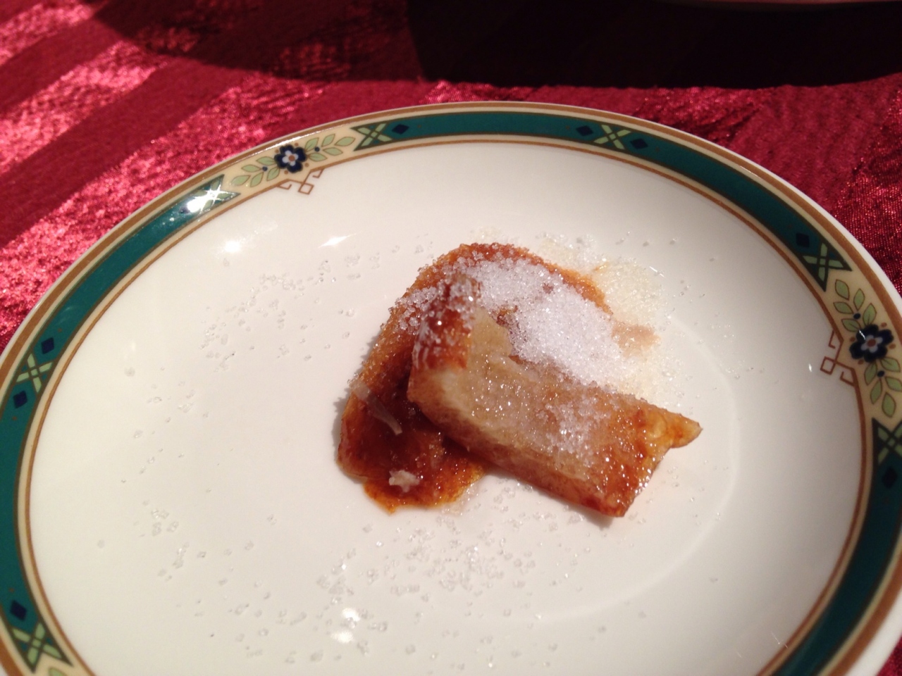 コースメニューで無くアラカルトで頼みましたがとっても高かった~。中国にある本物の全聚徳はとても庶民的なお店なのでギャップがありすぎてびっくりしました。前菜や一品料理のお味は本場に近いと思いましたが肝心の北京ダックがあんまり美味しいと思えませんでした。一枚目の皮をそいでから砂糖をかけると美味しいと言われて砂糖をかけてもらったらかけすぎやろー!というくらい砂糖でじゃりじゃり…。美味しくない…。