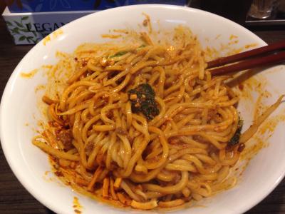 担担つけ麺と汁なし担担麺を注文。どちらもヒーというくらい花山椒が効いているのですが、汁なし担担麺の方がより花山椒が効いていてピリピリします。にんにくチップや揚げ麺、ナッツのざくざくした食感がとても面白いです。担担つけ麺の方は豆乳が入っているつけ汁が辛さの中にマイルドさが加わってとても美味しかったです。