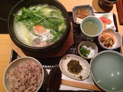 私は水炊きランチ、母は親子丼ランチにしました。以前水炊きを食べて美味しかったので期待していたらあの時ほどの感動は無かったかも…。でも水炊きの濁った鶏のスープがアッサリしてるのに唇がひっつくほどのコラーゲンがとても美味しいです。