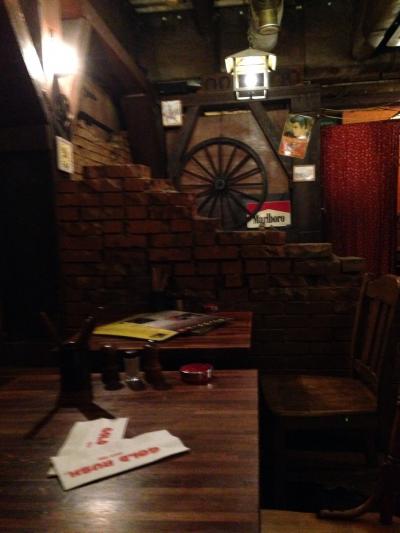 ゴールドラッシュという名前の通り、お店の装飾が当時のアメリカの雰囲気を醸し出しています。少し暗めでハンバーグをじゅうじゅう焼いているせいか、タバコOKなせいか、少し煙たい気もしました。