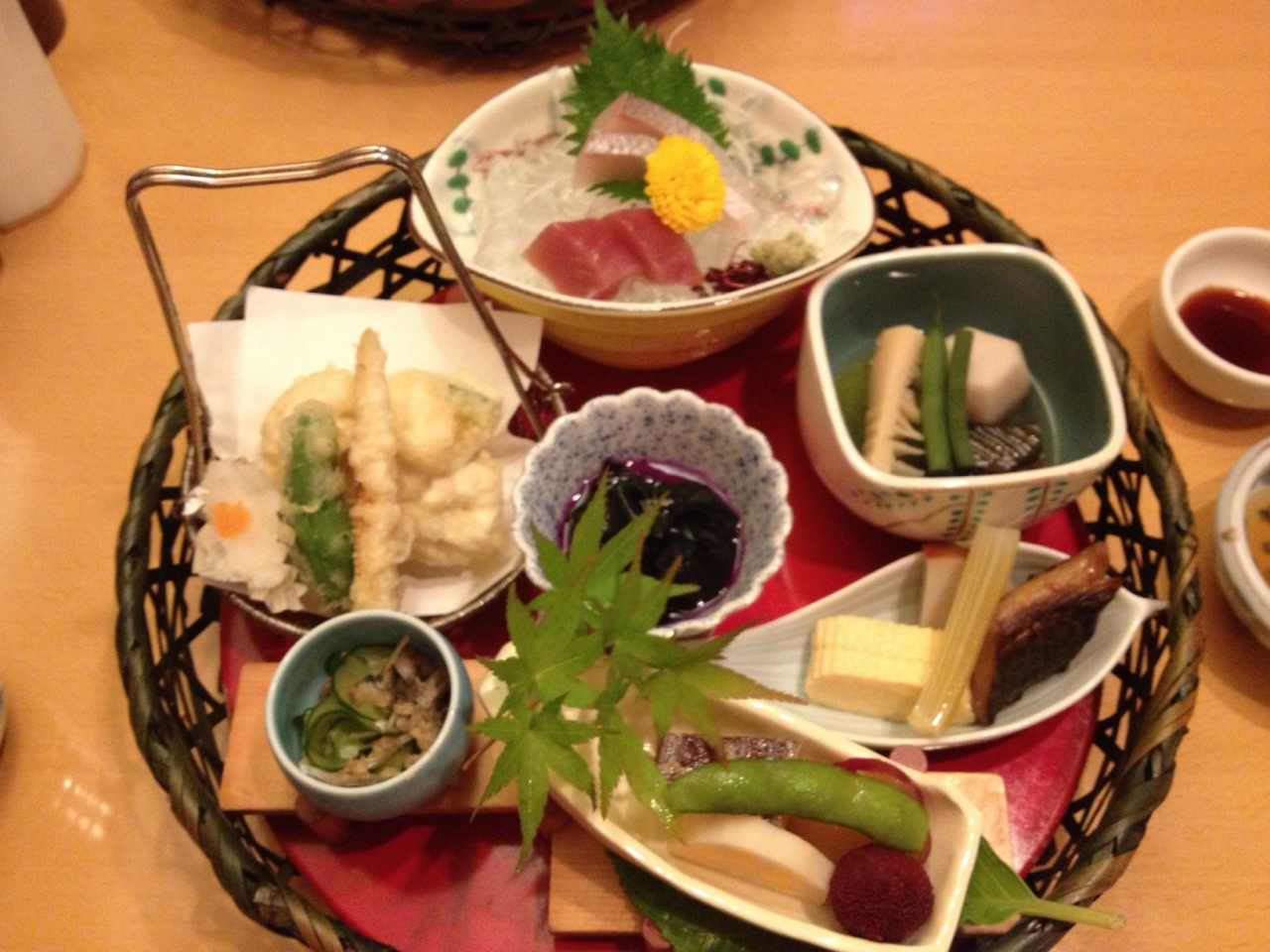 友人が普段から御用達の和食屋さんでした。店内はしっとり大人な感じです。色んなセットメニューに加えて単品メニューもありました。一番お得な「孤山弁当」は2100円で、少しずつ色んなおかずが入っていて見た目にも美しいです。お刺身、天ぷら、焚物、お汁、ご飯も貝柱の入った炊き込みご飯だし、大満足でした。最後はデザートがあり、アイスクリームかコーヒーが選べました。他のセットも美味しそうでした。