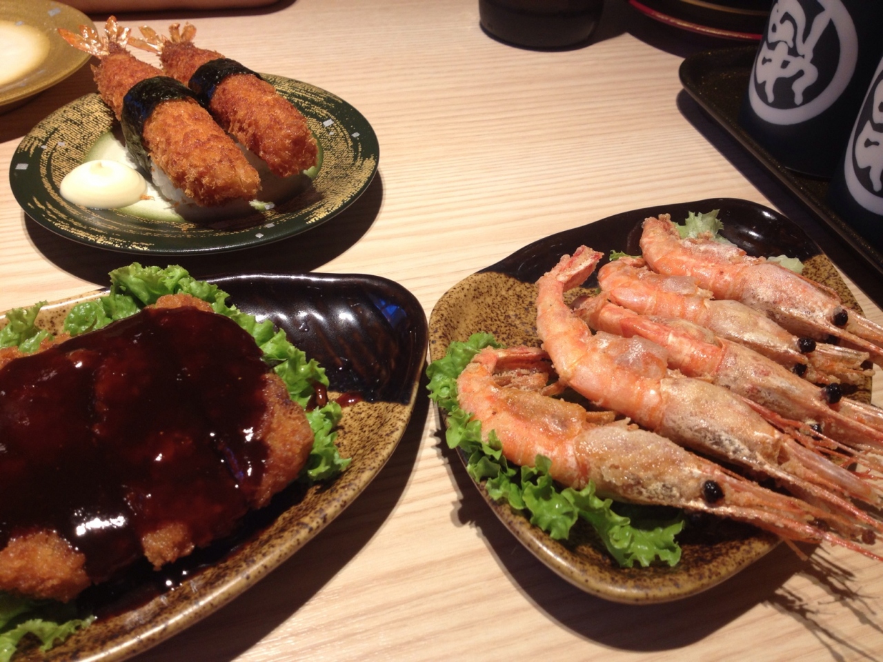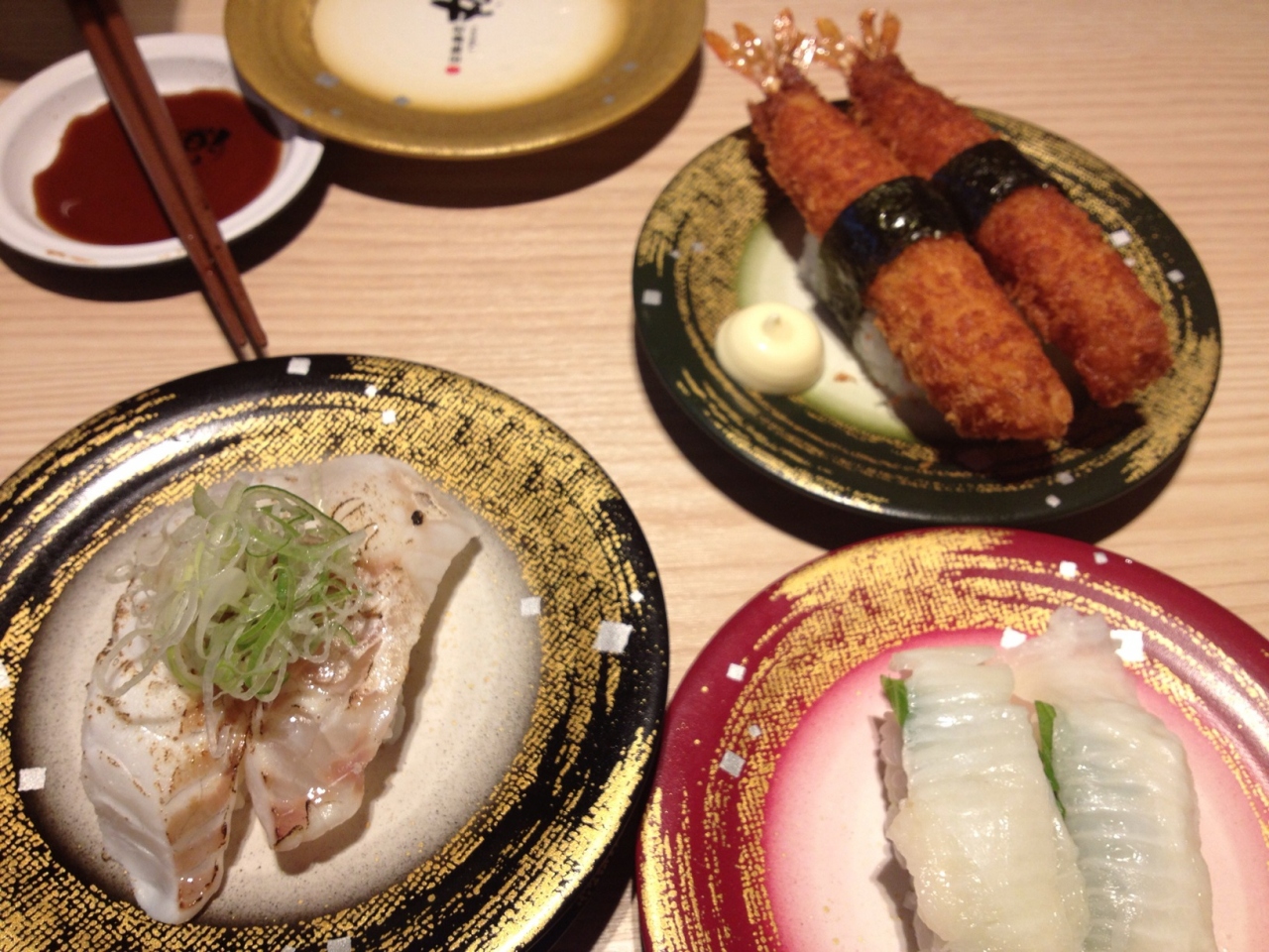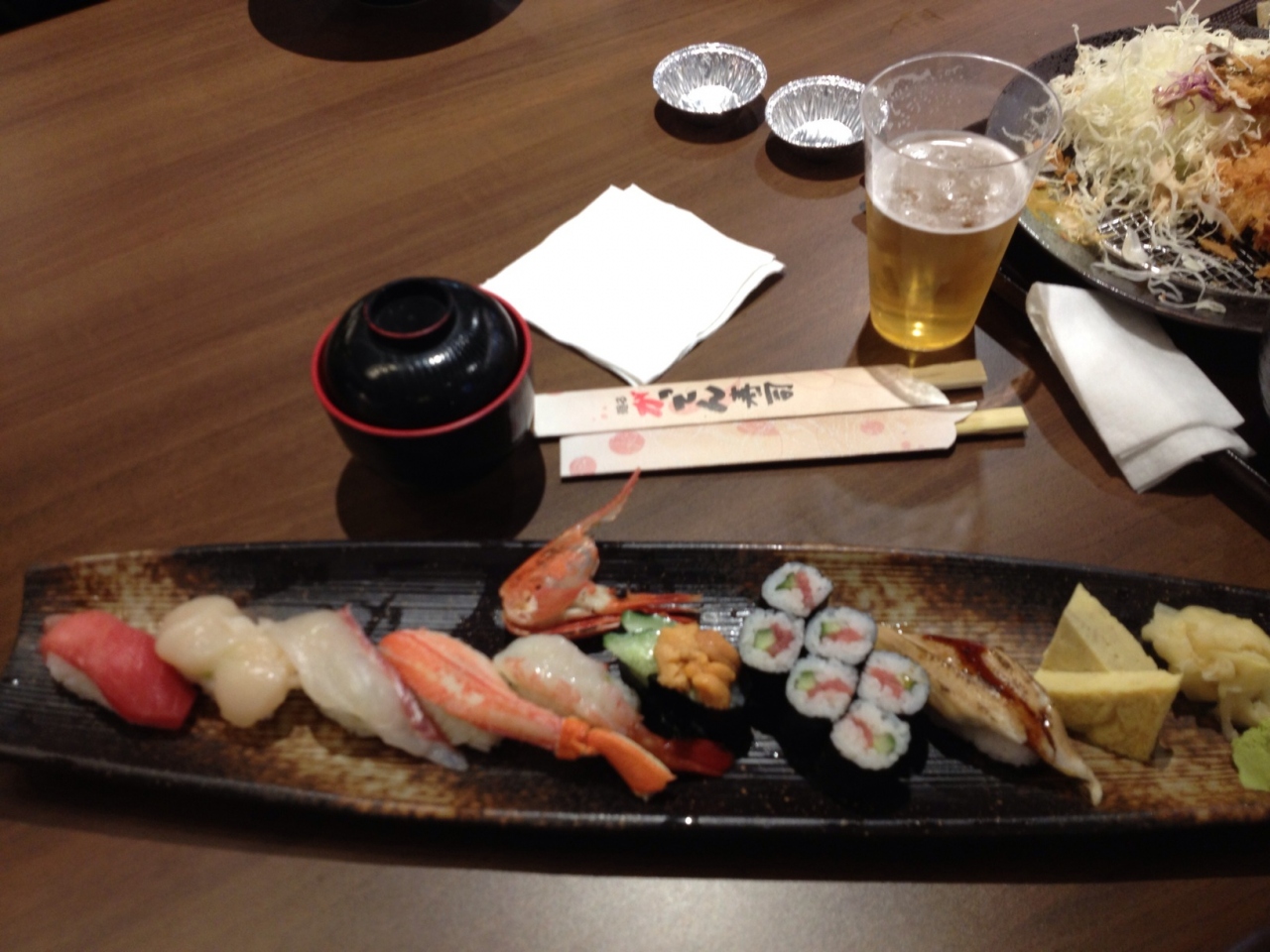 お味は回転寿司チェーンの合点寿司や天家より美味しいと思いました。その日によってお寿司のネタも違うでしょうが、中トロは思ったほどトロ感が無く、大トロの方が美味しかったな。おつまみも色々あって良かったけど、愛知県のお店だということもあるのか味噌カツがあるのが珍しかったです。エビフライ寿司も愛知県ならでは?お寿司があるならエビフライ単品があっても良いのでは?とか思ったり。単品で頼んだら行けるかもしれませんね。お腹いっぱい食べて二人で500元弱でした。