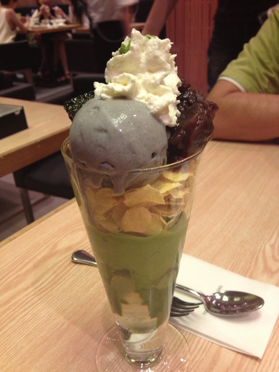 新天地近くに出来た回転寿司「丸忠」さんでご飯を食べた後、新天地まで歩いて行きナナズグリーンティーでデザートを頂くことに。前回ここを訪れた時は女性客でいっぱいでしたが、ちょうど晩御飯を過ぎた時間帯だったのですぐに座れました。やっぱり女性客、カップルが多かったですが皆さんデザート以外にカレーやラーメンなどを食べていました。