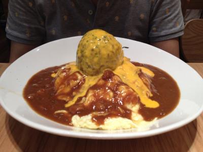 私たちはまんまるの肉団子が乗ったオムレツカレーと激辛ポークカレー、トップングは海老フライにしました。激辛の方はスプーンを口元へ持っていくとそれだけで辛い匂いがして実際にも辛いのですが癖になる美味しさでした。オムレツカレーはカレーも肉団子もインパクトが大きいだけでなくとても美味しかったです。肉団子を割ると中身がちょっと赤く見えるので火が通ってないのでは?と気になる人もいるかもしれません。海老フライは冷凍の普通の海老フライでした。
