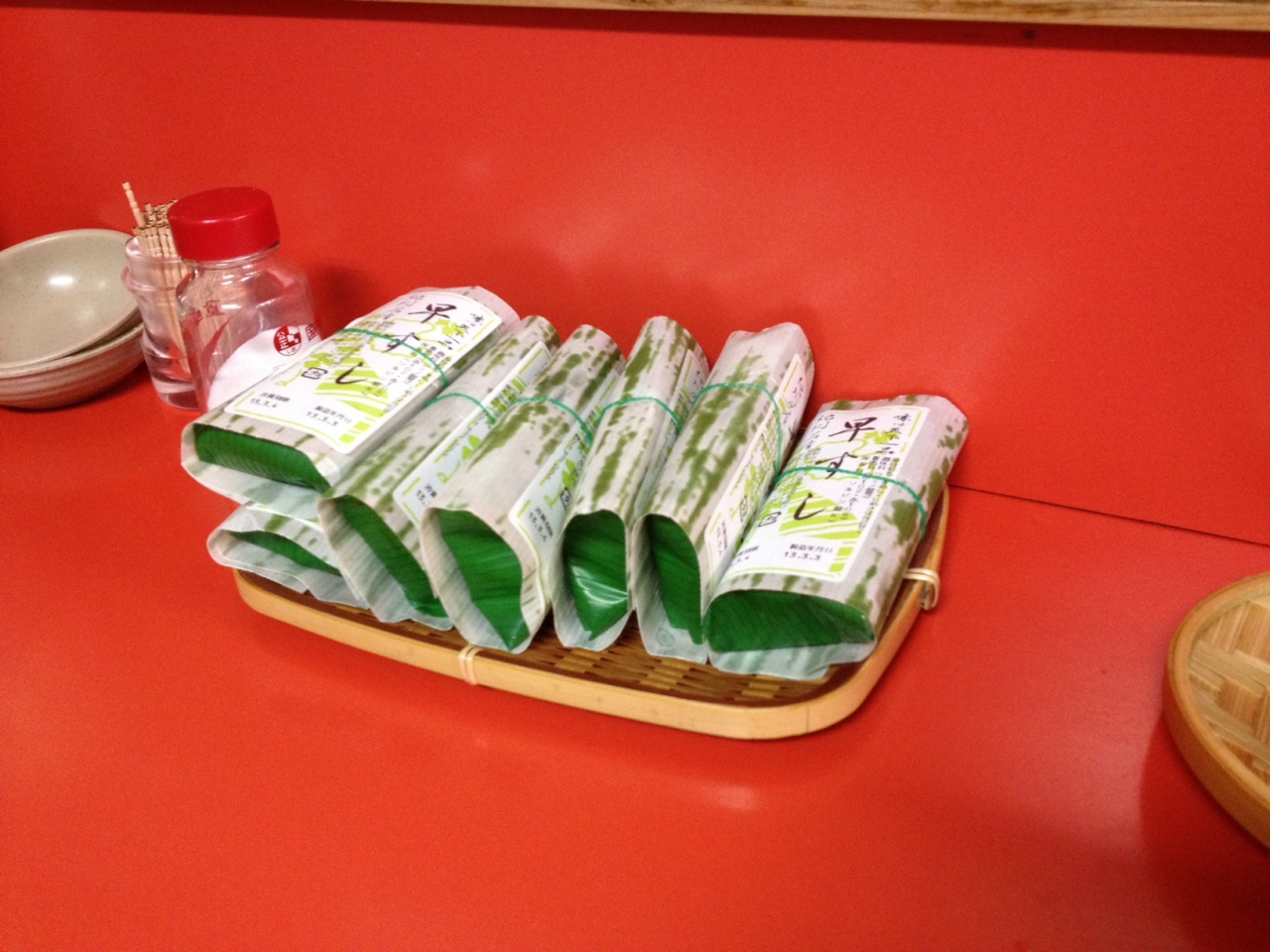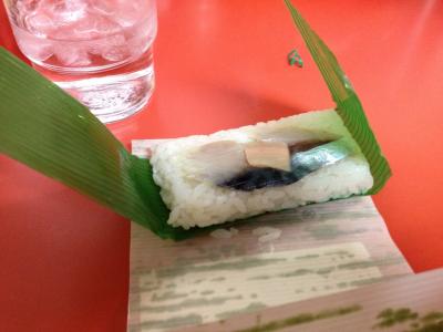 テーブルにはサバずしや茹で卵が置かれています。サバずしも一つ頂きました。味は普通でした。- 旅行時期