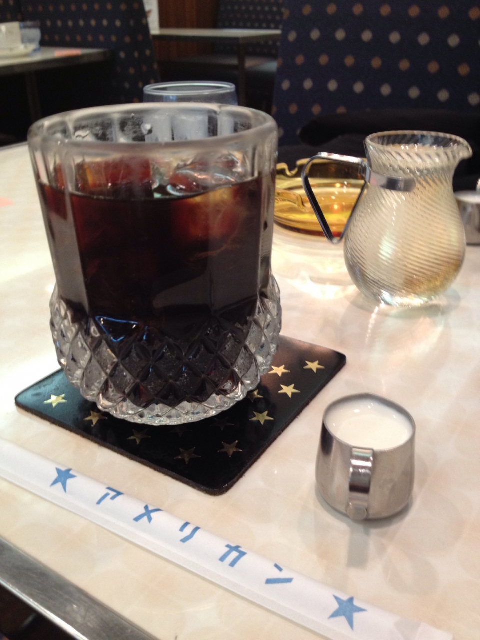 食べログで客席の多いカフェを検索していたらヒットしたのが純喫茶アメリカン。純喫茶ってなかなか入りづらいんですが、ここは何せ100席ほど席があるし、入り口もオープンな感じで年配のおばさんが「いらっしゃーい」って言ってくれるんでとても入りやすかったです。年配のお客さんが多いんですが、中には若い女の子が一人でホットケーキ食べてたり、グループやカップルで来ていました。これはゆっくりお茶しながらおしゃべりするのには良いなぁと思いました。
