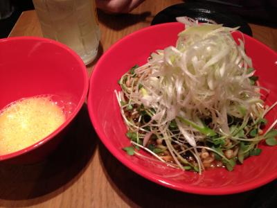 肝心のラーメンは3種類ほどありましたが、その中で「だにえるパンチ」というつけ麺を頼みました。ラーメンの入った丼と溶き卵が出てきます。これには食べ方があります。まずは下にある麺だけを2口味わい、その後野菜も全て混ぜ合わせてから2口、最後に溶き卵につけて食べると美味しいと聞きました。写真は最初のラーメンの状態なので分かりにくいかも知れませんが、大量のねぎの下にはかいわれ、辛い肉みそ、これまた大量の天かすなどが入っていて混ぜ合わせて食べると複雑な味わいです。そして山椒の効いた辛めのお味は後を引きます。お酒のアテにも良いかもしれません。- 旅行時期