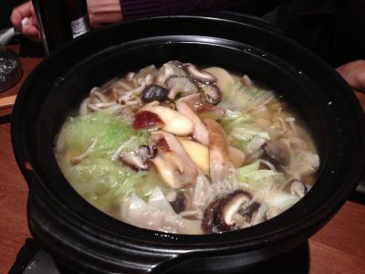 3階にあるもつ鍋屋へ行ったら断られてしまったので、1階にあったkemuriさんに入ることにしました。店の外からは何屋さんなのか全く分からないので、まずは何が食べられるお店か聞いてみることにしたら「炉端です」ということだったので入ってみました。店内は若干薄暗い気もしましたが席と席との間がゆったりしていて良い感じです。店長が幾つかおススメのメニューを教えてくださって、キノコ鍋はかなりお勧めということだったので(期待せずに)頼んだらすごく美味しかったです!色んな種類のキノコが大量に入った洋風の味付けのお鍋なのですが、スタッフの方がお鍋を持ってきた時にトリュフを目の前で削ってくれます。鶏肉も入っていました。最後の締めにうどん、ごはん、ちゃんぽん麺などもあります。