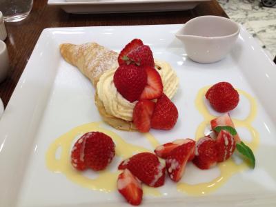 日替わりなのかお得なセットということでクレープセットを注文。色んな紅茶から一つ紅茶を選べます。私はジンジャー紅茶を選びました。クレープは見た目の華やかさほど美味しいとは思いませんでしたが、クリームが少なかったからかな??- 旅行時期