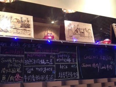 ランチタイムはランチセットが幾つかあります。私たちはその中でもチュニジアらしいおかず(名前忘れました)とピザなどを頼んで食べました。ピザ以外のおかずはとてもスパイシーで美味しかった!夜にはクスクスなどが頂けるそうなので、今度は夜に行って食べてみたいと思います!