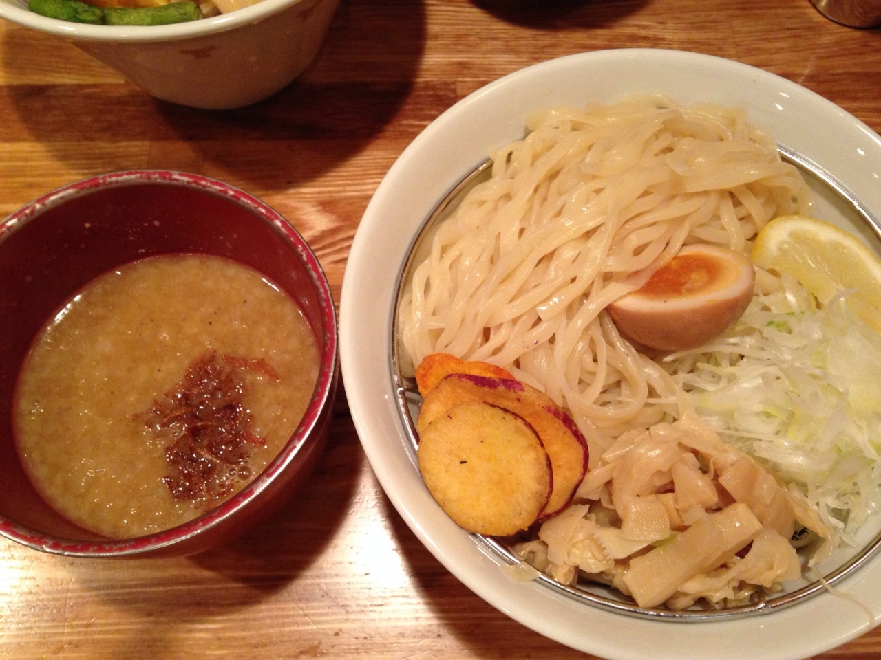 つけ麺と塩つけ麺にしました。麺はつるつるもっちり、つけ汁は最近はやりの魚介系とんこつ醤油で美味しかったです。お腹がいっぱいになってもまだ最後まで食べてしまうような癖になる味でした。- 旅行時期
