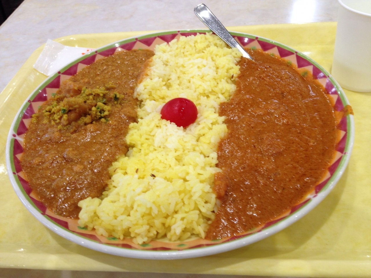 神戸プレミアムアウトレット内のフードコートにあるお店です。インド料理がこんなところで食べられるなんて嬉しいですね。どれにしようかすごく迷いましたがカレーが2種類選べる物を選択。スパイシーで味に深みのあるカレーがたっぷりでお腹いっぱいになりました。これは安いと思います。