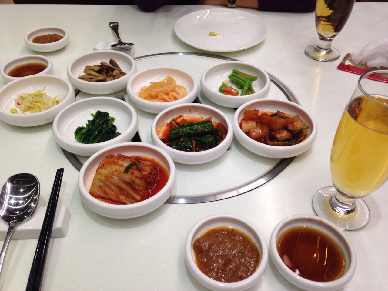 特級サーロインの焼肉、テールスープ、石焼ビビンバを頼んだら食べきれませんでした。韓国料理屋では最初に出てくるキムチや前菜の盛り合わせが豊富でお代わりも自由になっていますが、これをつまみながらビールを飲んでいると料理が来る前にお腹がいっぱいになるという難点も…。焼肉については頼めば厨房で焼いてきてくれます。お料理自体は可もなく不可もなくという感じでした。- 旅行時期