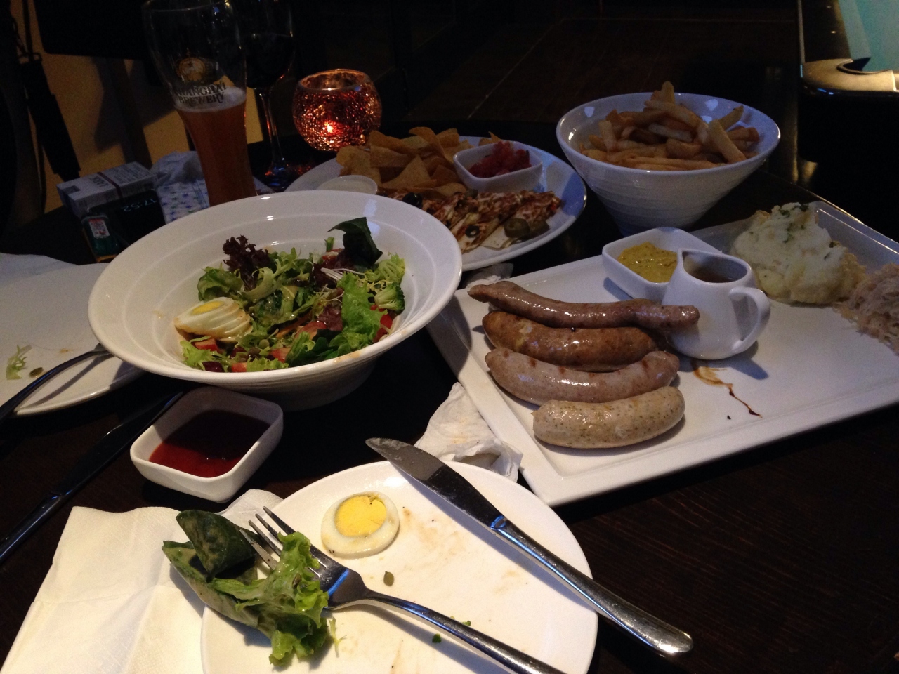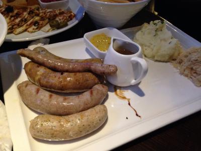 フレンチフライ、ソーセージプラッター、チキンケサディーラ、サラダを注文。サラダもポテトも山盛りです。ポテトは思ったほど美味しくはなかったけど、そのほかのメニューは大正解。メキシカンもドイツ料理もあるお店です。時間帯によってハッピータイムがあり、ドリンクが安く頂けます。ブリュワリーというくらいで色んな種類のビールがあります。私が頼んだピーチビールは少し甘くて飲みやすかったです。あまりにお腹がいっぱいになったので余ったソーセージは持ち帰りました。- 旅行時期
