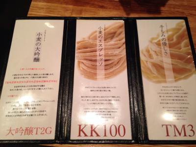 まずは入口のところにある食券機でラーメンを選ぶのですが、初めて行ったので何をどう選べばよいのかものすごく迷いました。というのもラーメンの種類が普通の醤油とか豚骨とかじゃなくて、大吟醸T2GとかTM3とか書いてあってさらには小麦のエスプレッソ、小麦の大吟醸などのタイトル付きでさっぱり分かりませんでした。