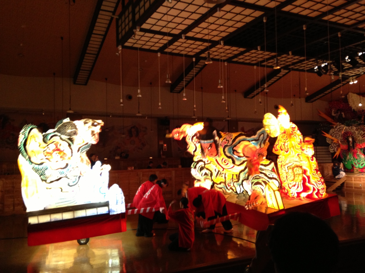 館内で色々なイベントが行われていて無料で民謡や三味線のショーが見られます。有料(1000円)で4大ねぶた祭りショーも見られます。これが飛び込みで席を取っていただいたのですがなかなか迫力があって楽しかったです。