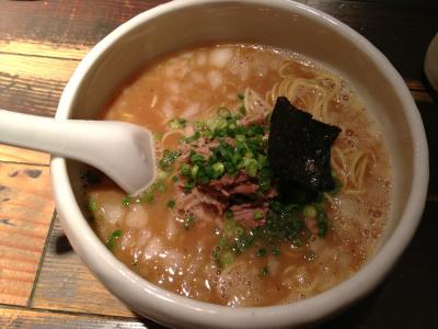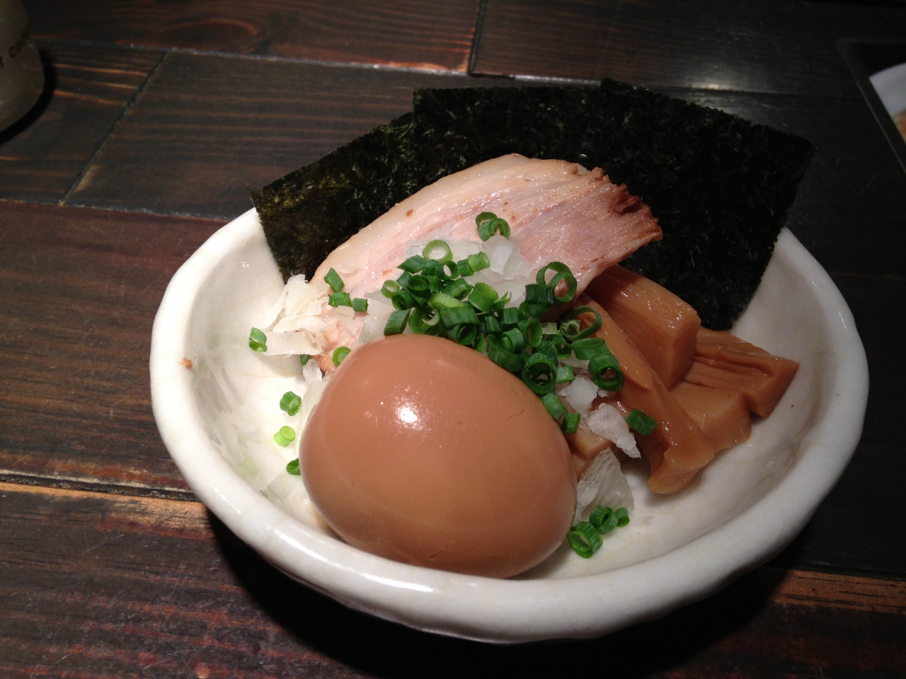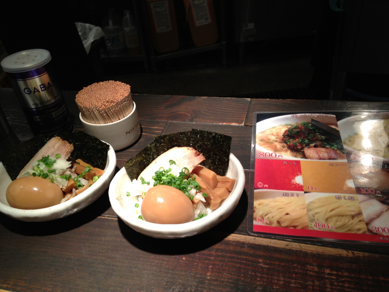 魚介系とんこつのラーメンです。つけ豚そばとかけ豚そば(ラーメン)を頼んでそれぞれにメンマ、味つけ卵、のり、チャーシューのトッピングを頼んだら、スープには玉ねぎのみじん切りが入っていてさっぱりして美味しかった!玉ねぎなんて初めてでびっくりしました。麺も太さが違いました。- 旅行時期