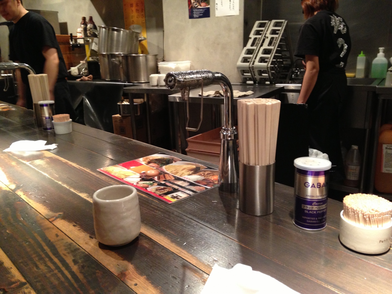 雨が降っていたのに開店時間を少し過ぎたところでも並んでいる人が大勢いました。ラーメン二郎は気になっていたお店ですが、食べ方に色々ルールがあると聞いていたので行くのを躊躇していました。ですが、ここ東口店はきれいな店内でしたし、2人で行ったのですが2人並んで座れるようにしてくれました。
