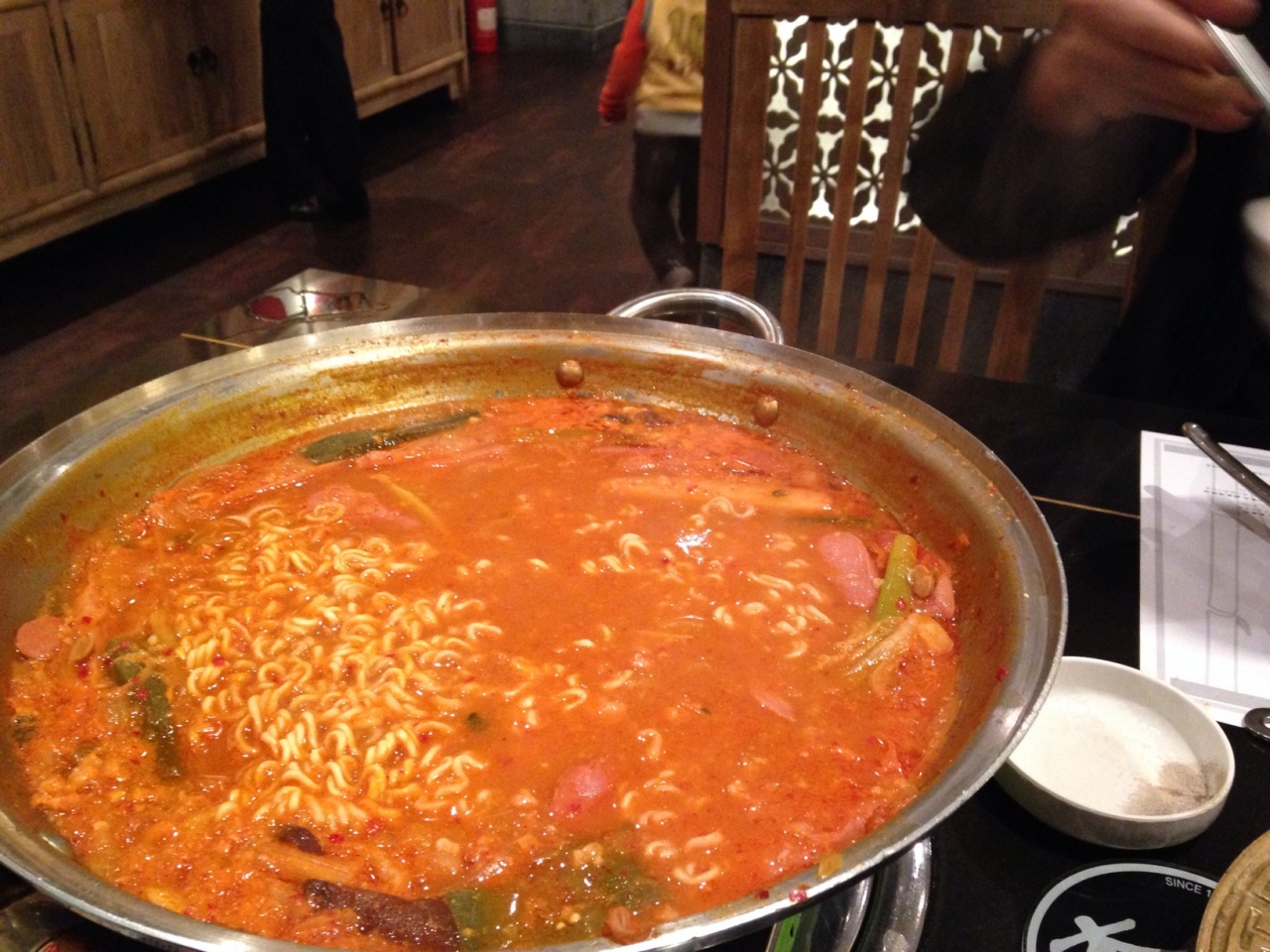 韓国へ行った時に食べられなかったプデチゲと何か焼き肉をと思いましたが、焼き肉は2人前からしか注文出来ないとのこと。プデチゲも量がとても多いし、焼き肉も1人前150gくらいあるのでお鍋とお肉では食べきれないと思い焼き肉を断念…。最初に出てくるキムチなどの前菜の量も多いのでお肉は残念だったけど頼まなくて正解だったかも。