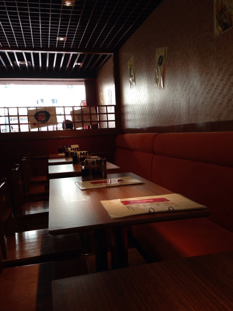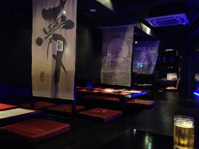 入り口はややこしいですが奥に入ると掘りごたつの座敷、カウンターが広がっています。日本のテレビも放映されていました。喫煙可ですが家族連れもちらほらいらっしゃいました。