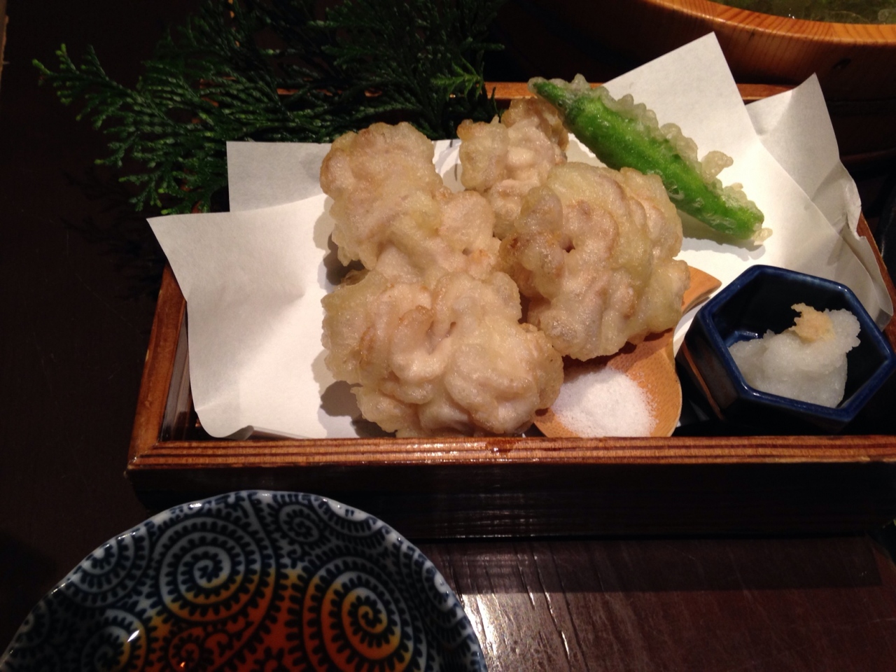 イカの刺身は一番小さいのを注文、100gで2000円とか書いてあったと思います。カキフライ、白子の天ぷら、ブリとミル貝の刺身、サザエのつぼ焼きを頼んで16000円。た、高い。美味しかったけど~。- 旅行時期