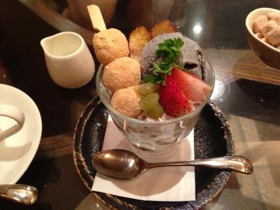 デザートのセットがあり、お椀盛りとお皿盛りとありました。私はお椀盛りの和風デザートにしたら、ごまアイス、わらび餅などの和風デザートが盛り合わせになった物でした。普通に美味しかったです。飲み物とセットで950円でした。友人はハンバーグ丼を食べていました。- 旅行時期