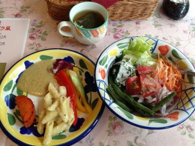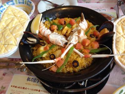 平日に車でお邪魔しました。ランチはメインを選んで、前菜バイキングを選んで1500円前後という感じです。4人で行ってメインにパスタ、ピザのセットと2人用のパエリヤセットにしました。