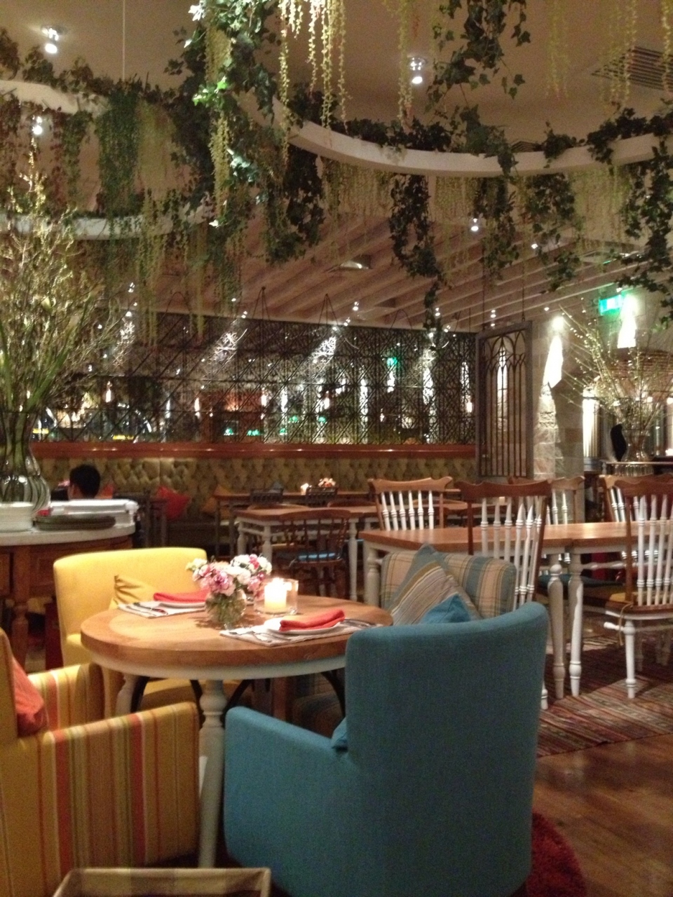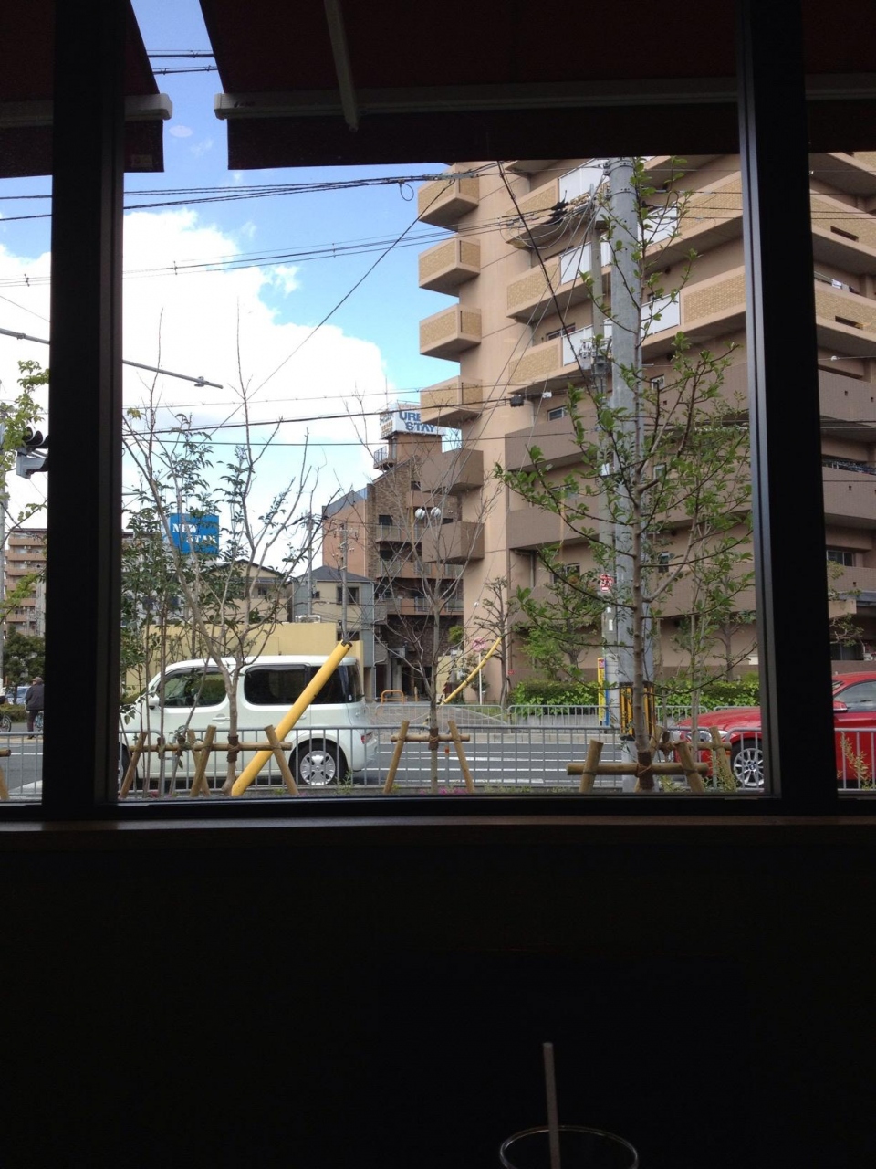 グランフロントで夕ご飯を食べた後、どこかでお茶を飲もうと探していたところですぐに座れるカフェがこちらでした。店内はガラス張りになっていて外にある階段状の噴水が涼しげです。