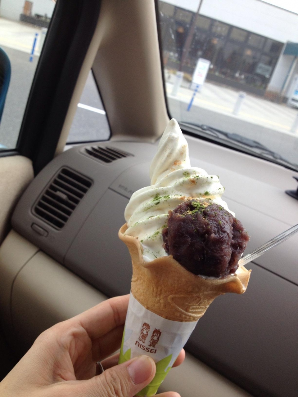 土山サービスエリア内には目を引くお店や食べ物が多いです。車で到着した時は外の看板などを見てごまのソフトクリームかきなこのソフトクリーム(他店の商品)を食べたいと思っていたのですが、サービスエリア内に入ってから「おはぎソフト」を発見しこちらに変更。地雷也さんはお稲荷さんが有名みたいでしたが、お稲荷さんは買わずにおはぎソフトとおはぎを買いました。本当はおはぎ単品のと同じ大きさのおはぎがソフトクリームに載っているかと思っていましたが、さすがにこぶりのおはぎが一つでした。それでもソフトクリームの量も結構多くて食べごたえがありました。おはぎは甘さ控えめでかなり美味しかったです。