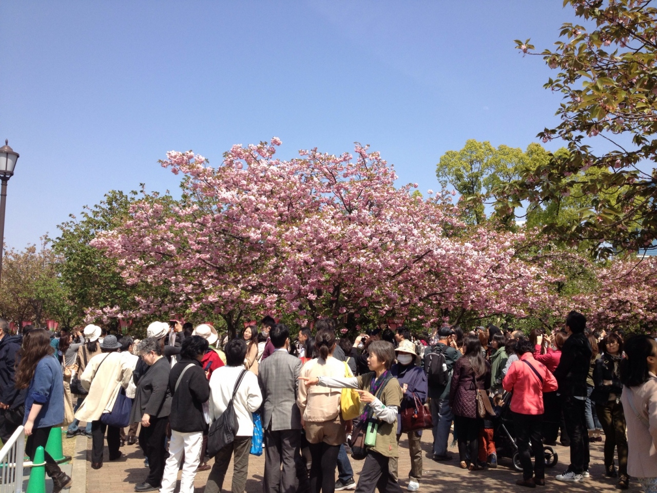 大阪人としてあるまじき事かも知れませんが、成人してから20年近くも経って初めて造幣局の通り抜けを見に行きました。今年は4月16日~22日までです。お天気の感じや街中の桜の咲き方を見てみてもすでに遅いことは分かっていましたが、造幣局がこの1週間だというのだからまだまだ咲いているのだろうと期待していました。ところが、やはり桜は殆ど散りかけていて、満開に咲いている桜は数本でした。残念。来年はきちんと満開の時期に来たいです。600メートルほどの道の両側に大量の桜の樹、きちんと咲いていれば絶対にきれいだろうなぁ。ちなみに一方通行なので出口を出ると再入場できません。入口へ戻らなければならないようです。
