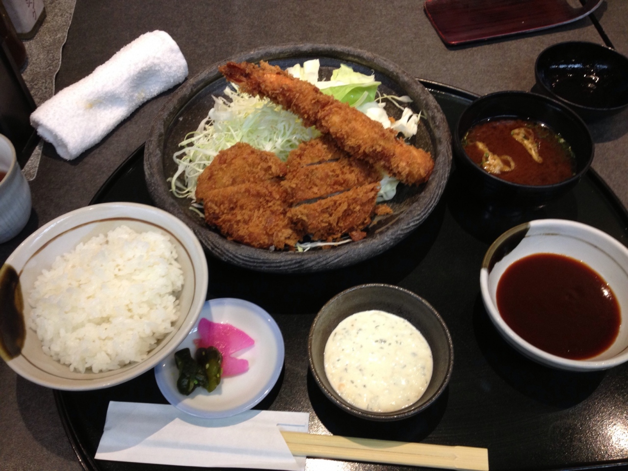 家族からは美味しいと聞いていたので、晩御飯に食べに行きました。ここは元々はお寿司屋さんをやっていたお店だそうでお寿司も美味しいとの事。たくさんあるメニューの中から何を食べるか決めるのに時間が掛かりました。結局無難な所でレディースメニューにしましたが、これが大当たり。大きなエビフライに上ヒレとんかつの柔らかい事!キャベツとご飯はお代わり自由なので、ご飯を少な目に食べてキャベツをお変わりしました。満腹満足です。お値段はちょっとお高めかも知れませんが、それでも平日の夜の割にはお客さんが結構入っていました。