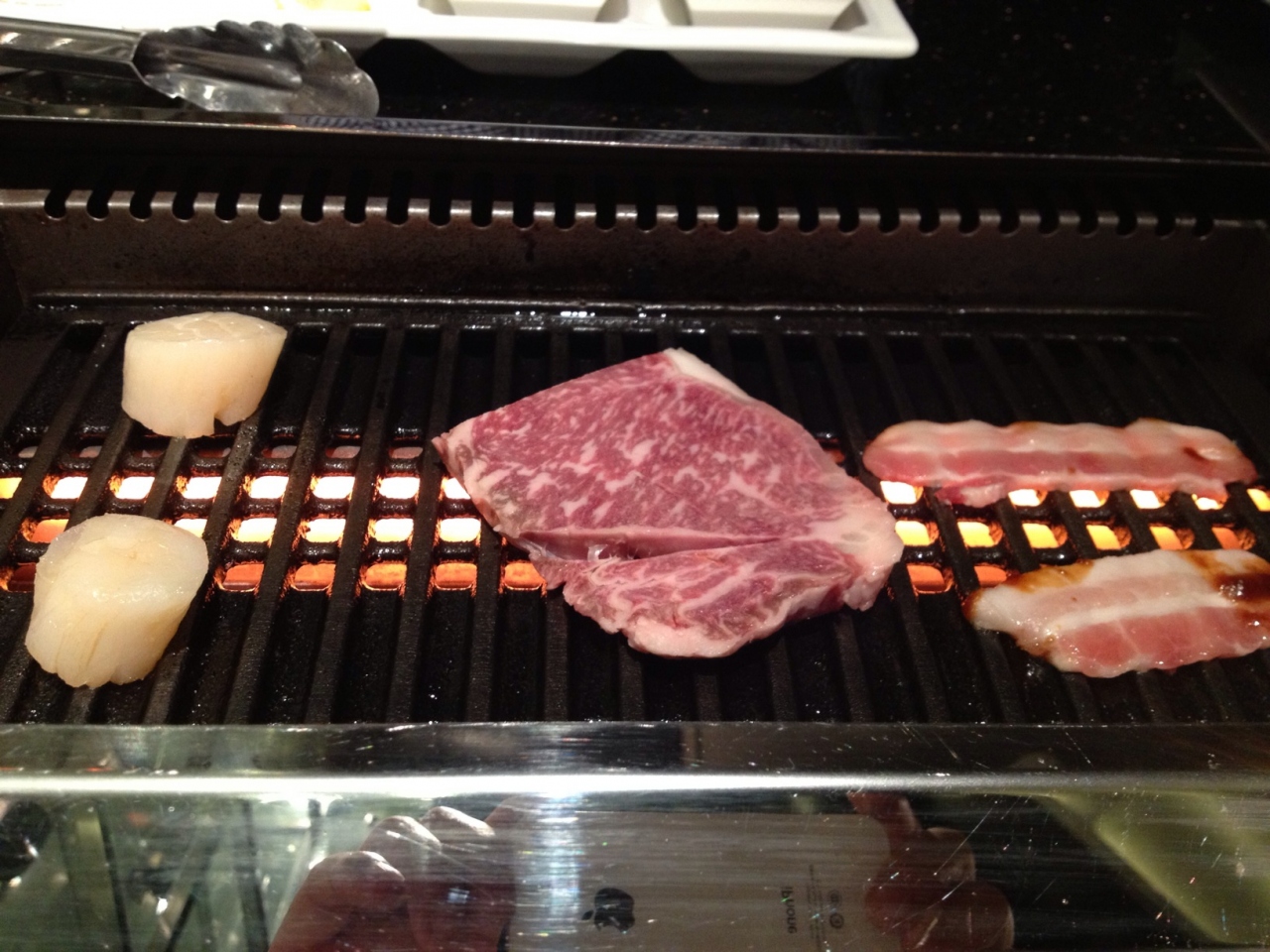 ifcモールの中には色んな日本食レストランが入っているのですが、その日はお寿司やとんかつ、天ぷらの気分ではなく、ラーメン屋なども覗きましたがお客さんが並んでいて諦めたところに見つけたのが孫三郎。以前雑誌か何かで日本人がオープンさせたお店だと読んでいたので入ってみることにしました。店内はとてもゴージャスな造りになっていて、テーブルの配置も余裕があるので隣のお客さんが気になりません。この日の店内にはお客さんはちらほらでした(ほぼ外国人)。店員さんは日本語は話しませんでしたが、とてもサービスが良く気持ちよい対応をしてくれます。