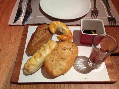 最初にパンが出てくるのですが、パンの種類も4種類ほどあり温かいし、バルサミコ酢とトマトソースが添えられてあり満足しました。その後で前菜、主食(パスタ、リゾット)、メインの順にお料理が運ばれてくるのでメインを頼みすぎると後でお腹いっぱいということになってしまうかも…。リゾットもパスタもきちんとアルデンテだったし、どれも美味しかったのでまた来ようと思いました。- 旅行時期
