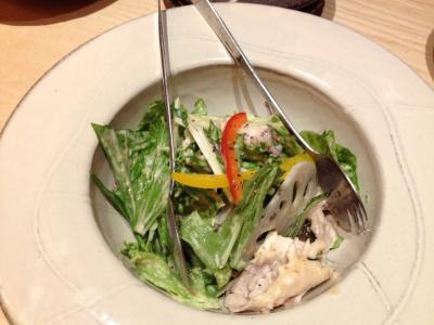 色んなお店が入っているグランフロントのレストランフロアですが、ここは海老とれんこんの専門店ということで面白いなと思って入りました。メニュー全体的に海老のメニュー、れんこんのメニューが多いのですが、珍しいメニューではなく良くある感じのメニューかなという気がしました。大きなエビフライと謳われていたエビフライは驚くほどの大きさは無くてアレ?これが大きなエビフライ?と思ってしまいました。サラダなどもポーションが小さいのでお腹いっぱいになるまで食べるならたくさん頼んだ方が良いですね。