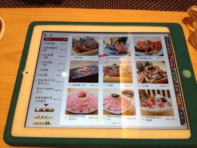 お店は展示場なども兼ねたオフィスがたくさん入ったビルの1階にあり抜群の立地で、店内もかなり広く取ってありとてもきれいな内装は良いのですが、いかんせんメニューの内容が…。お刺身などは異様に高いし、いくつか頼んでみても「今日はありません」と言われてガッカリ。そのメニューはiPadを使用した最新式の物でしたが、見慣れていないせいか使いにくかったです。中国人のお客さんは何組かいらっしゃったので、そういう方に向けたお店なのかもしれません。- 旅行時期