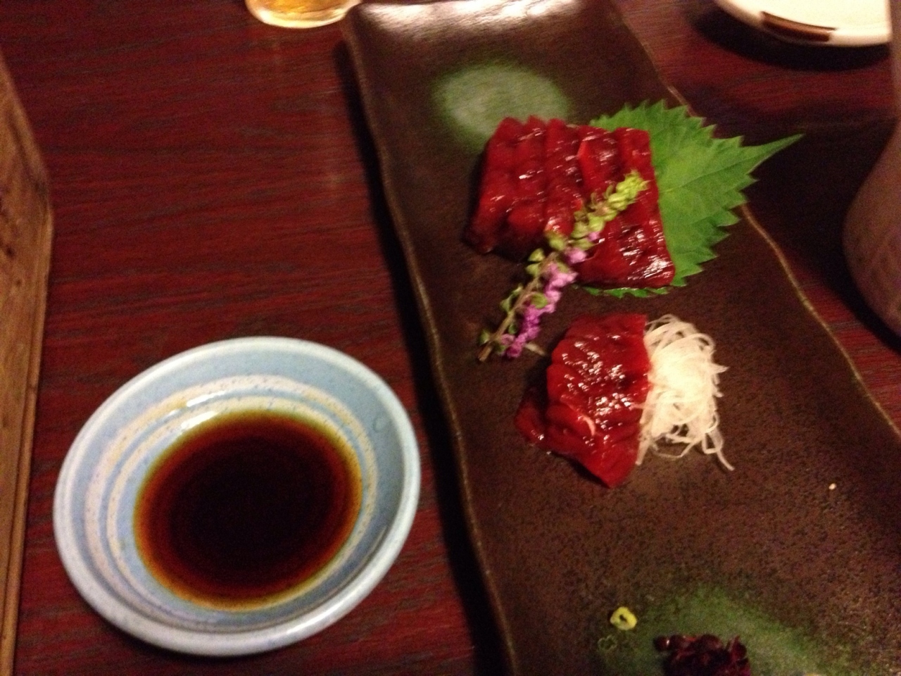 どぜうのお鍋は小さく薄い鉄板で、お鍋を焦がさないようにタレを足しながらねぎをいっぱい載せて食べるそうです。さらに置いてある山椒をかけるとピリッと爽やかな香りが鼻を抜けて旨い〜。5?ほどの大きさのどじょうがこんなに美味しい物だとは思ってませんでした。骨を取り除いたものと骨付きの物があり、どちらも食べましたが骨付きでも骨は殆ど感じませんでした。この他くじらの刺身、どじょうのから揚げ、クジラ鍋、どじょう汁なども頂き大満足の食事になりました。