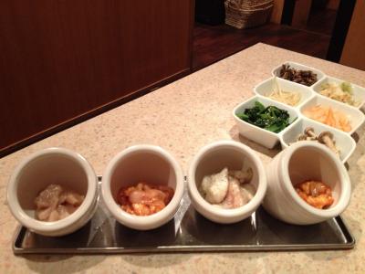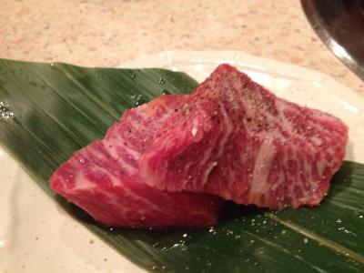 まずは厚切りメニューからタン、上カルビのハーフ。タンは厚切りだと厚すぎて歯ごたえありすぎの気がしましたが、上カルビは油たっぷりで美味しかった。その後で150gのステーキを頂きましたが、歯ごたえサクサク、油は少ないけどお肉が柔らかくて本当に美味しかったです。今度はステーキを食べに行こうと思ったくらいです。そのほかにもホルモン盛り合わせ、ナムル、ロブスター、サクラユッケを頂きましたがどれも美味しかったです。