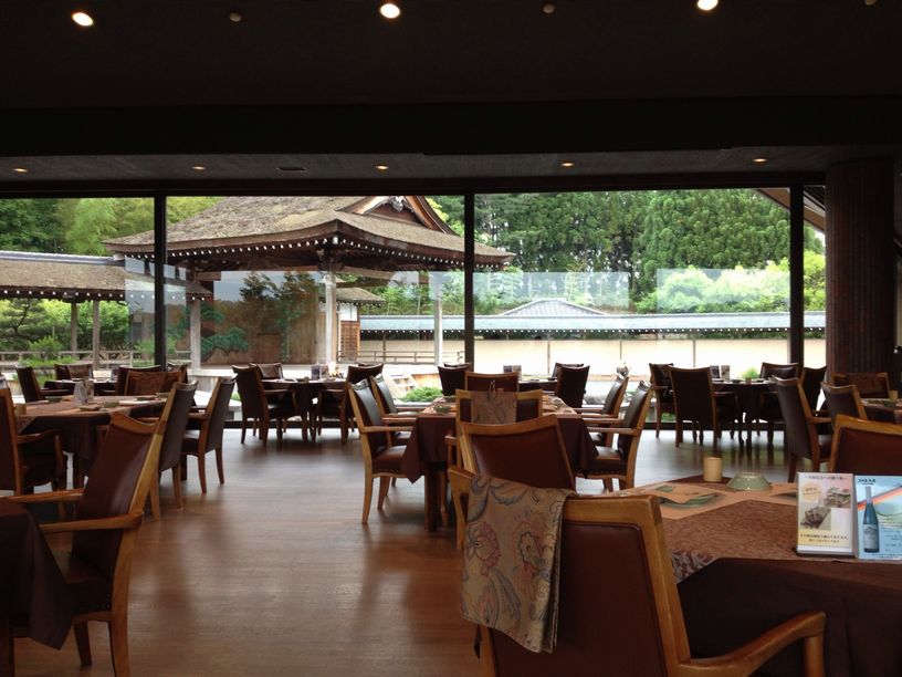 大塚美術館内にあるレストランです。レストランからは緑の芝生が敷き詰められた庭園と、遠くには海が見えてお天気の良い日はとても景色が良いです。
