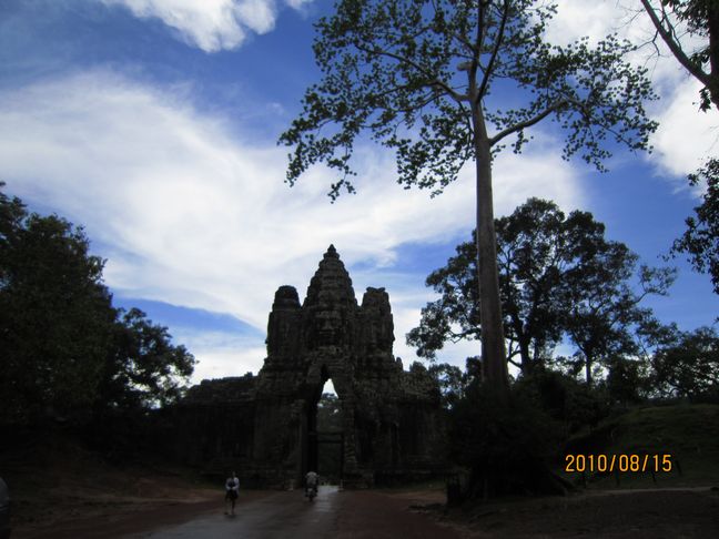 半日ツアーを申し込んで、ガイドさんに説明をしてもらいながら回りました。アンコールワットほど派手な美しさは無いけれど、アンコールトムも静かな味わいがあります。アンジェリーナジョリー主演の映画「トゥームレイダー」の1シーンに使われたという遺跡と自然に生えた木が一体になったところも見られます。ここは観光客の写真スポットとして有名だそうです。アンコールトムのバイヨン寺院、象のテラス、ライ王のテラス、タプローム寺院と盛りだくさんの内容を日本語の説明とともに回ることができて効率的でした。この辺りは携帯電話の電波が通じないので車に忘れ物をしてしまって困りました。