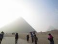 クフ王のピラミッドの中へ入るチケットは午前、午後で250人分しか無いと聞いてたけど8時前に到着した時にはもう無かった。とこの入り口の時点ですでにピラミッドが見えている。見ないようにしておかないとちょっと感動が薄れそう…。
