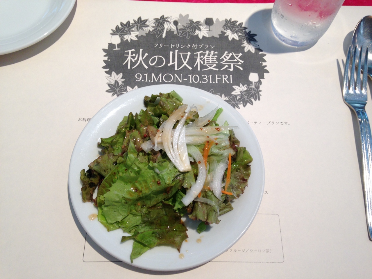 ランチメニューはいくつかありましたが、その中のパスタランチ(1000円)にしました。サラダ、食べ放題のパン、パスタがついています。ドリンクやデザートは追加メニューにリーズナブルな値段でありました。