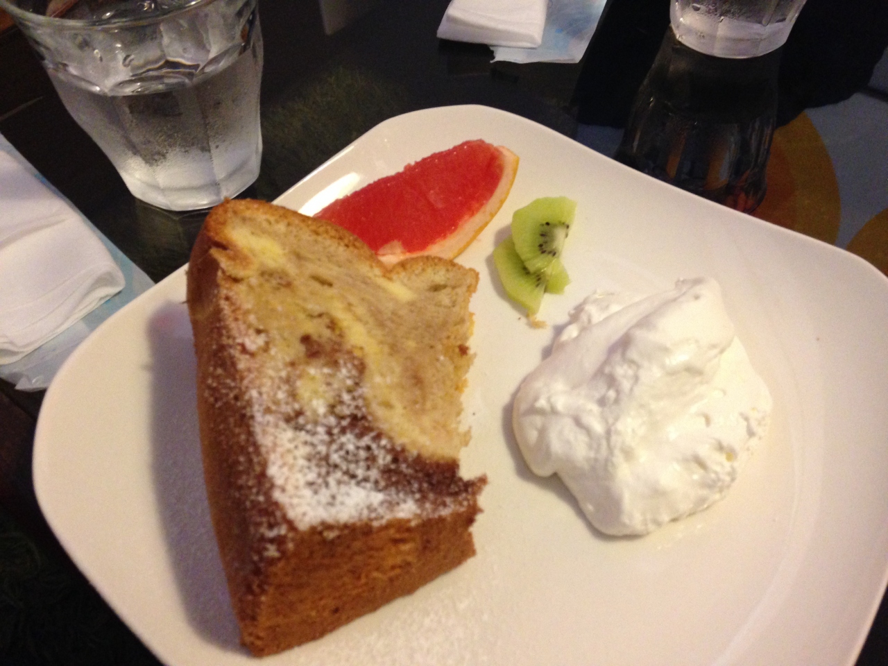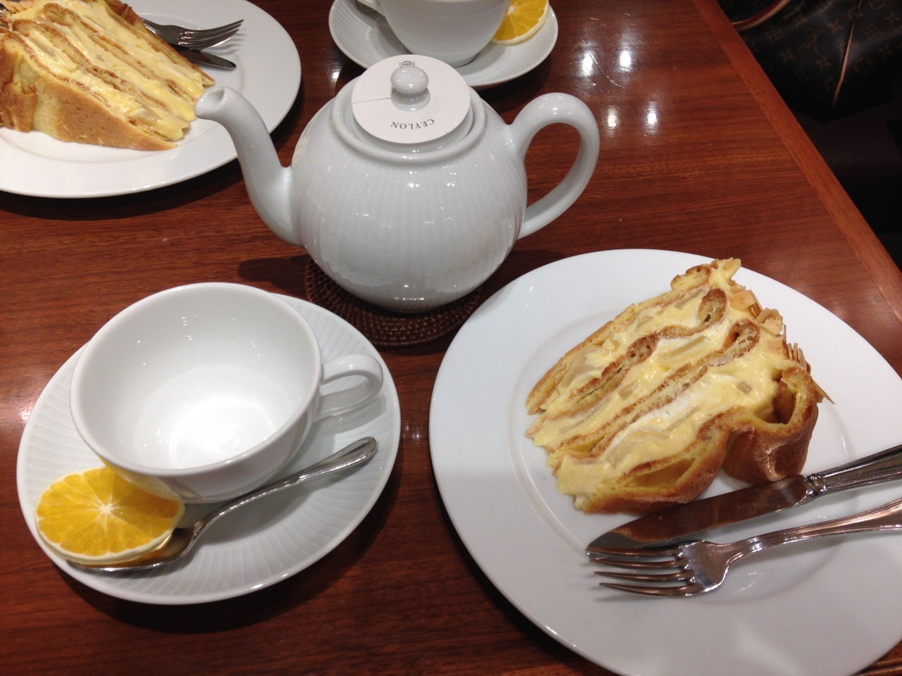 洋ナシのミルフィーユとセイロンティーのオレンジを注文。ミルフィーユはシュー生地でサンドしてあります。洋ナシのコンポートとクリームが挟まって美味しかった!セイロンていーはレモンかミルクかオレンジを選べたので珍しいオレンジを選んだところ、特に何もオレンジの特徴が出ませんでした。絞ったら良かったかな?ホットティーはポットで供されるのでゆっくり出来ますよ。- 旅行時期