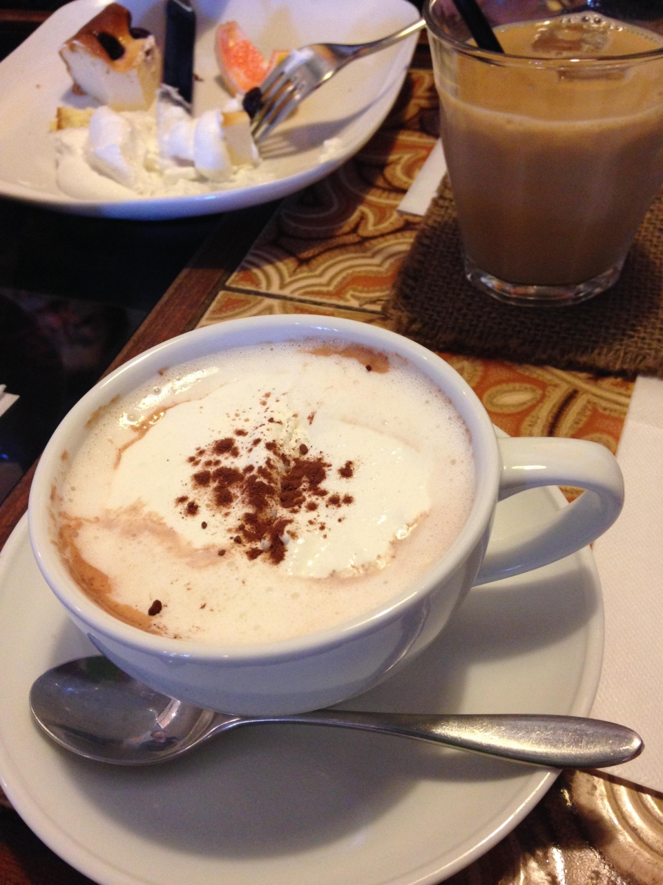 ランチタイムが14:30までだったのに店内に入ったのは14時頃だったのですがカフェメニューもOKと言ってくれました。私はアイスカプチーノを注文。ミルク、コーヒー、ホイップクリームが層になったコーヒーで美味しかったです。かなり長い時間座っていましたがゆっくりできました。- 旅行時期