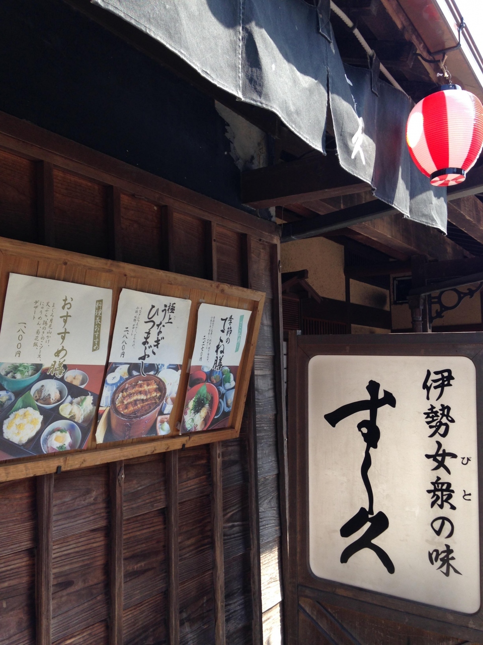 伊勢神宮内宮へ向かうおはらい町の通りにある2階建ての大きなお店です。待っているお客さんがいっぱいで名前を書いて10分ほど待つと席に通してもらえました。
