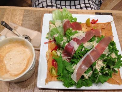 ランチタイムに珍しいケークサレパンケーキを注文したところ、私的にはハズレでした…。見た目はとても美味しそうなんですがパンケーキが若干生焼けの感じで、しっとりというのとはちょっと違う雰囲気です。やっぱりクレープにしておけば良かったなーと思いました。