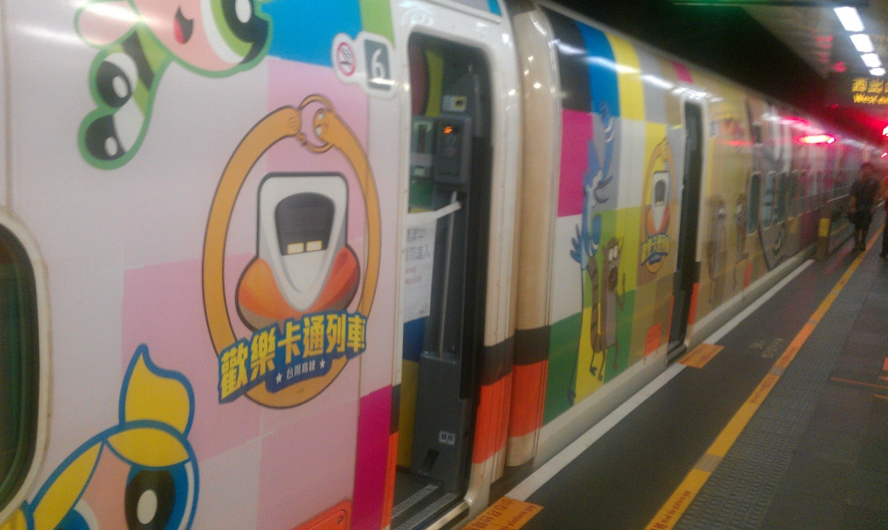 (上+下)通頻道(カートゥン・ビンダオ)という一日中アニメを流してるテレビチャンネルの全面広告を施した新幹線です。6月ごろより2編成が投入されています。