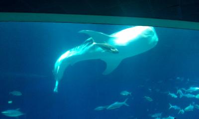 豆腐(沙+魚)でトウフーサー、これが中国語のジンベイザメ。日本では模様が甚平に似ているからですが、台湾では豆腐(白い斑点が豆腐にもありますよね)がたくさん集まった様子だとか。ちゅらみはそのほかの施設、魚も充実。那覇から1時間以上かけてくる価値ありの水族館です。